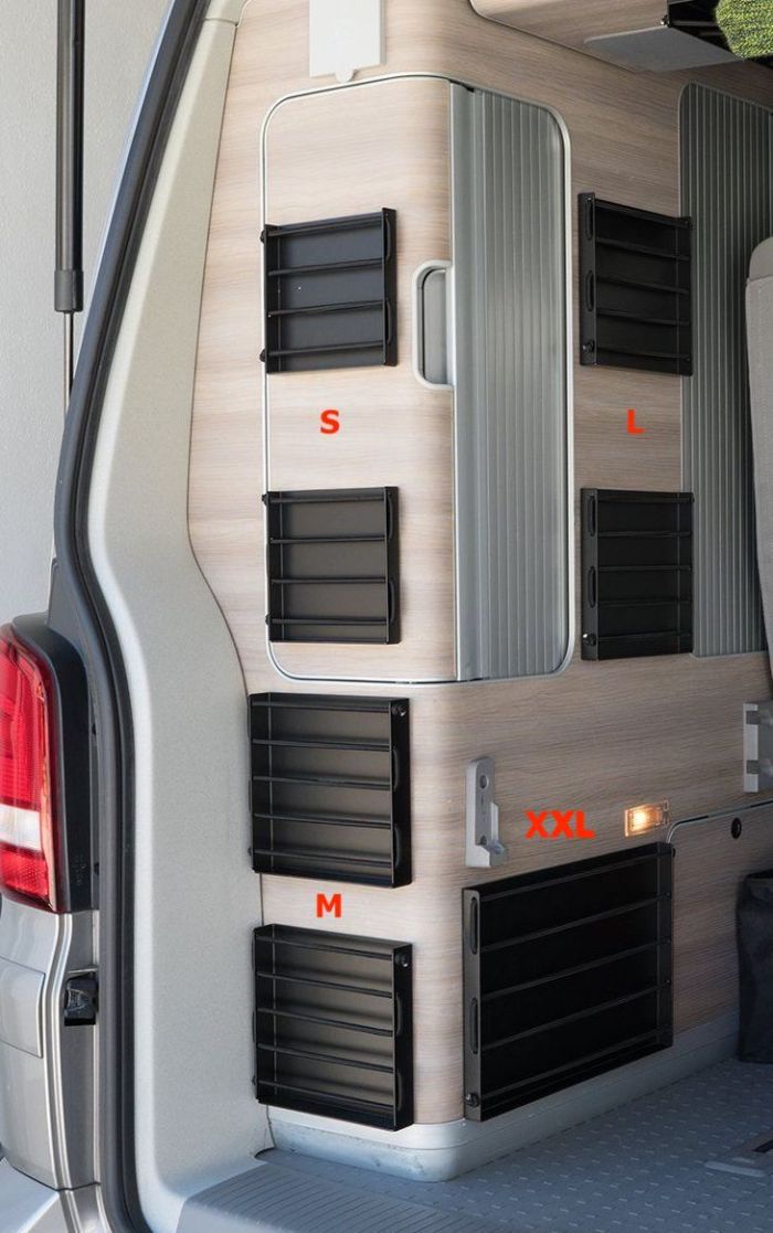 Organiza tu camper con compartimentos portaobjetos de aluminio, ligeros, resistentes y fáciles de instalar sin herramientas.